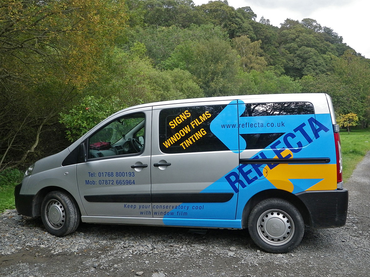 My own van involved a bit of a larger area and a few more bits to shape around. I used Hexis Hexpress HX2000 for the light blue. I found this not quite as easy as the HP vinyl although in places I’m sure it was my lack of training. It took me 3 half days to get the base blue in place juggling between rain and other jobs. It was quite a struggle and actually physically hard work. It confirmed my belief that I need to do a training course before attempting any more. I was quite happy with the eventual finish although close inspection from another sign maker will see lots of little mistakes.