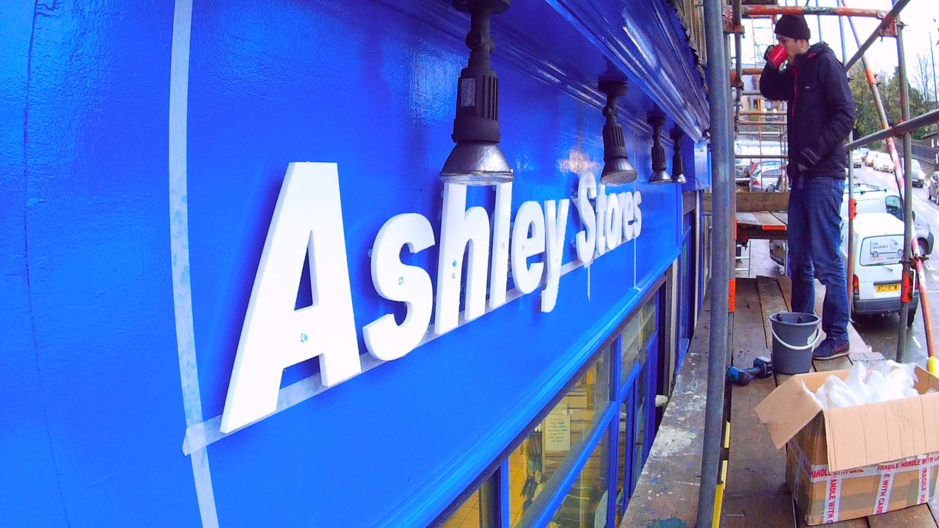 The letters are 700mm high and 10m overall length. I’ll have a cherry picker on hire for this. My question is really to do with making sure i put everything on straight and level. For something this size how would i go about marking it out? Would a string line be suitable for this or do you think a laser level would be better to get a straight line? And what about things like fixing the template in place? Its going onto a flat stone building btw.