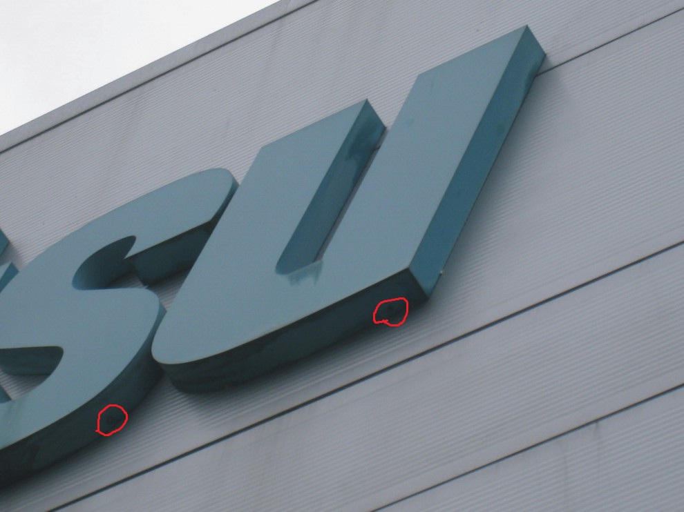 I have brightened up and added lots of contrast and its showing up the screw fixings around the edges of the letter. "see red arrows"