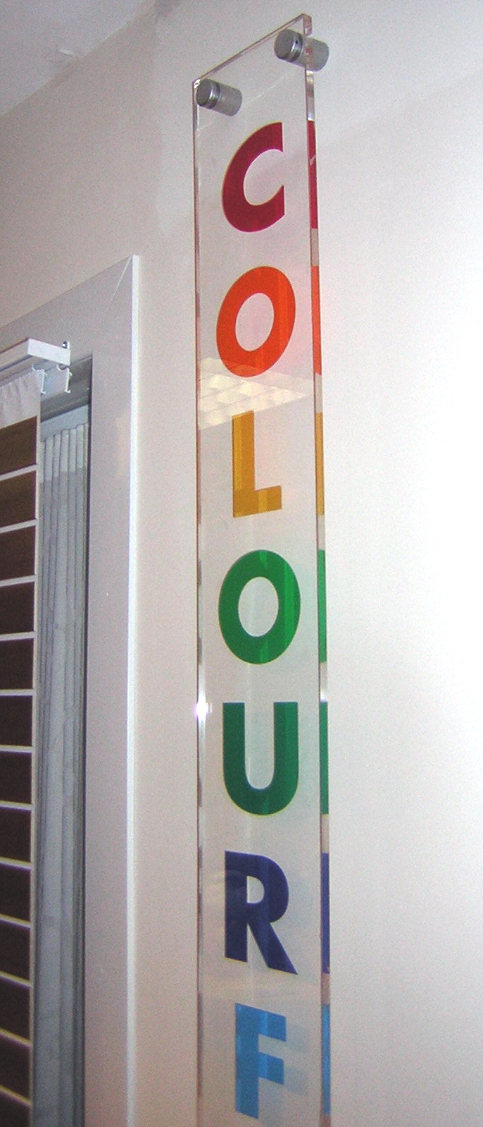 ‘Colourful’ – 1200x150mm in 8mm acrylic – multi-coloured vinyl on rear.