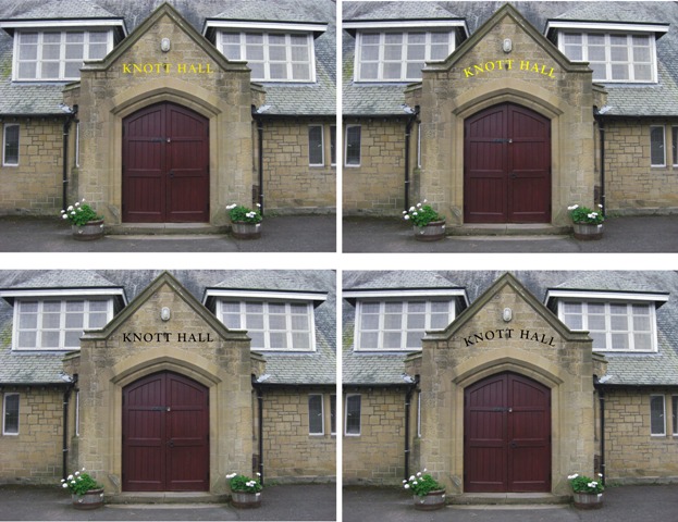 Derek, talk the customer out of gold letters unless you have something behind them, have seem a few jobs where gold letters have been used on that colour building and they are almost completely lost, far worse than in the visual you have done I would say.