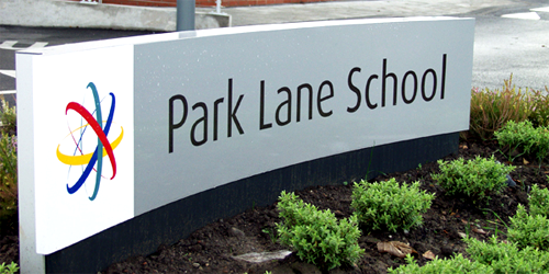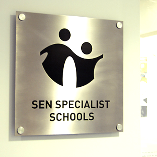 Internal signage at the High School co-ordinates with the external signs, using black text on a silver panel with quadrant sidetrack framing, and tactile and Braille signs with custom graphic panels are to be installed at Park Lane Special School.