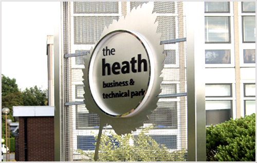 The Heath is a business and technical site located near Runcorn in Cheshire. It provides flexible office accommodation, laboratory facilities and extensive conference facilities. SOG Ltd. who owned and operated the site at the time, commissioned the architectural design of identity and directional signage. Of the manufacturers contacted to quote, only Green Brothers Signs LTD were able to meet the technical challenge presented by the design concept.