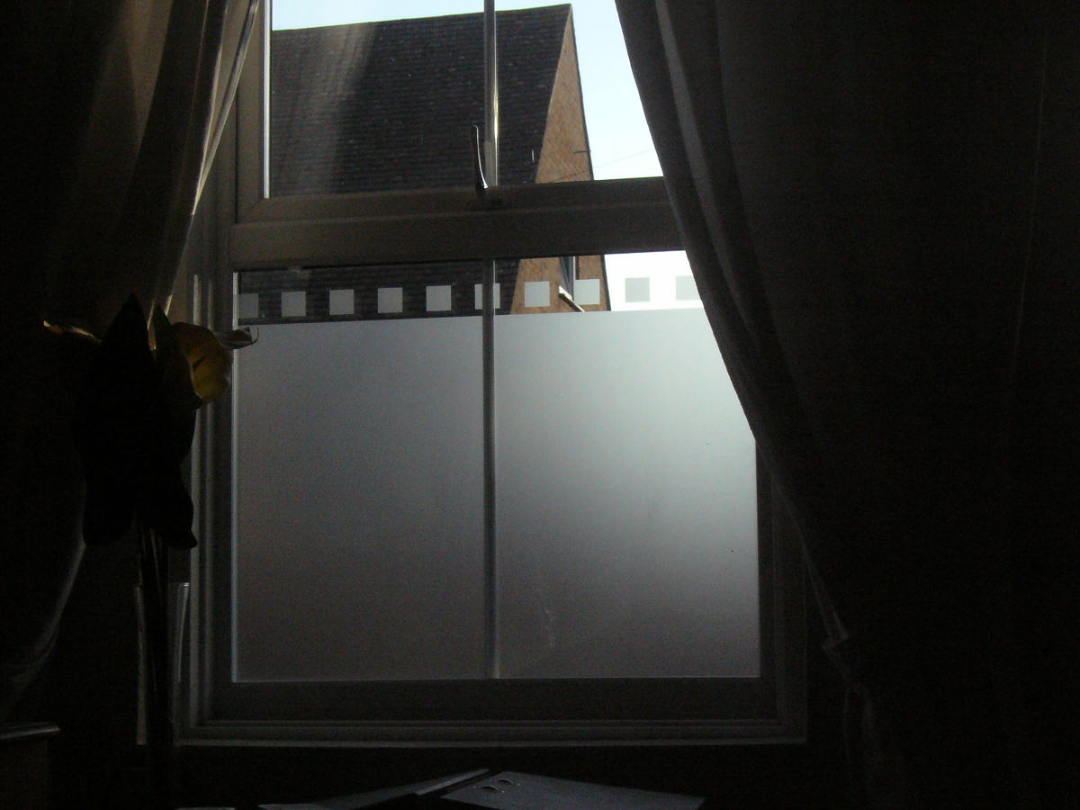 Anyway, I did mine because I had taken down the blinds that were previously there and binned them. After leaving the windows bare (there’s another window in the room too) I decided I didn’t want to put blinds up again but wanted something to the diffuse the light. As privacy isn’t an issue I did the top of the glass to kinda give the effect of blinds…. well sort of!!!!
