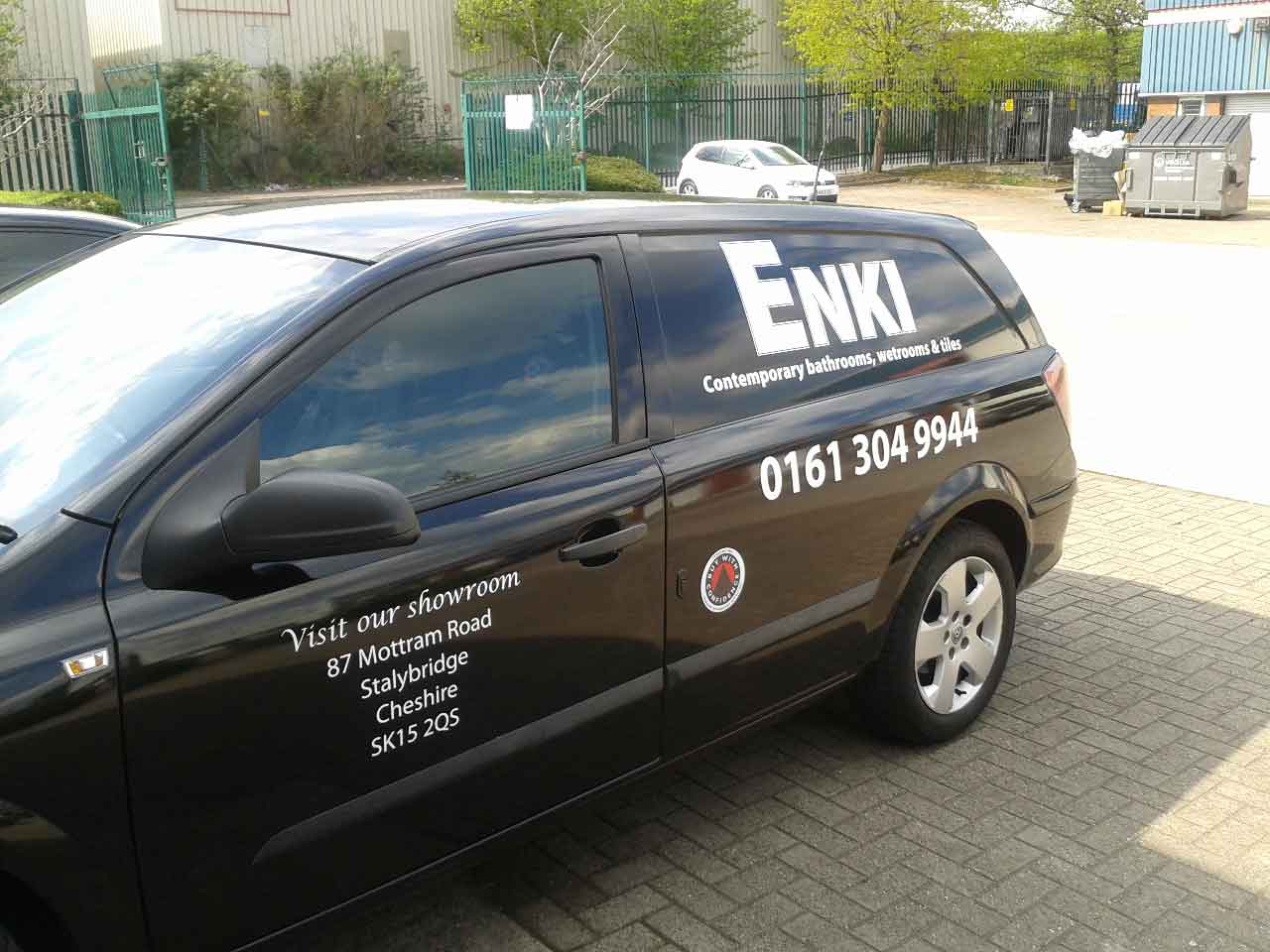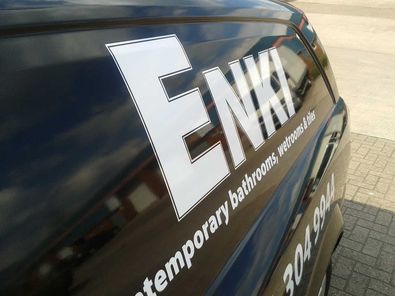 ENKI Bathrooms specialise in high end bathrooms, so wanted something ‘classy’, so we opted for a chrome vinyl, but using it sparingly.