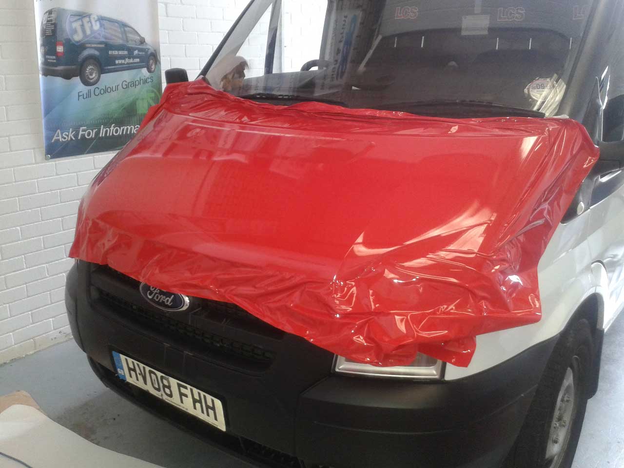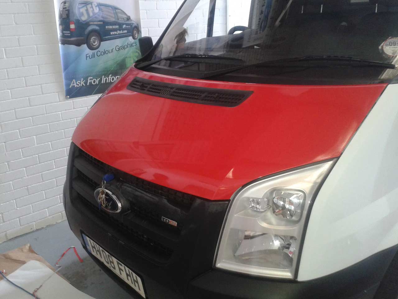 They then bought the Transit to us, we inputted that maybe wrapping the bonnet would keep in with their branding and also make it stand out more… we were right! Customer’s really pleased with both vans.