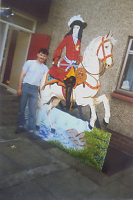 Hullo folks, this work was done for charity, this project took me 6-8 weeks on and of , it was constructed from two 12mm sheets of ply, cut out with a jigsaw, painted and hinged, it was probably the most intense job i have ever done in all of my25 years in the trade, i raised £1200.00 which was donated to a 10 year old boy, who suffered from muscular dystrophy, he went on a special holiday with his family, sadly he is no longer with us, but i have great memories from this job thanks JOHN JBS, 🙁 🙁 PS this is me in the photo, was a lot thinner then!