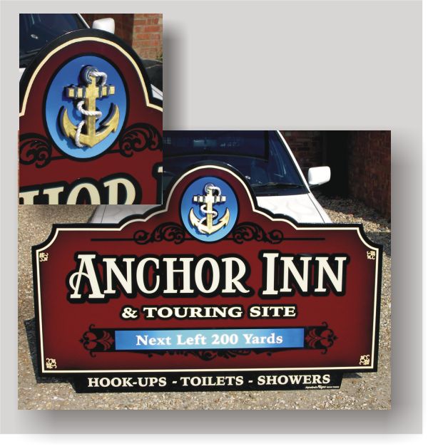 New pub sign that I completed today, its for a roadside, the customer is fitting himself 😕 Painted background, all vinyl lettering, the anchor cut from 18mm thick material gilded & painted with 1shot, a bit of white polyprop rope for effect (79p from Homebase 😆 ), sold for £300.