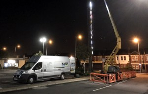 While a certain Mr Bond has been busy promoting his latest adventure, Hardy Signs have been on location in Tottenham Hale, London for an action packed LED lights installation. Hardy Signs and Digital have been busy installing new LEDs into oval logo boxes. These boxes are fitted in two 75 ft high totems at the retail park. The installation team have been on a very gruelling schedule, working through the night to avoid road blocks and minimise health and safety risks. Tottenham Hale Retail Park offers a shopping experience for everyone – homeware, beauty, pharmacy, white goods, IT, entertainment, food, toys, fashion, stationery, phones, motoring and DIY. The retail park has a range of UK’s top retailers such as Costa, Asda, B&Q, Greggs and Subway to name a few.