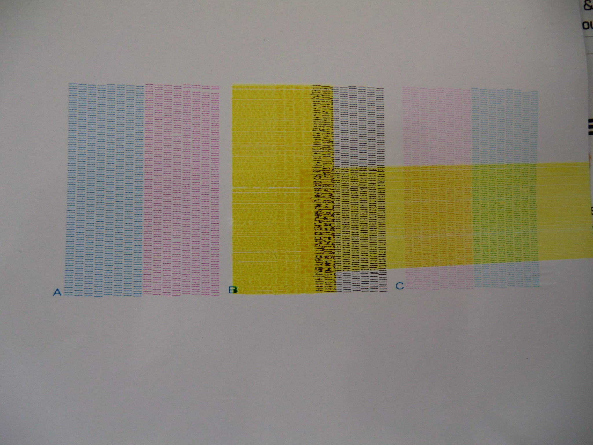 The cable ends look ok. No delamination. Isolated the left bank on the yellow head with electrical tape and was getting almost a full half test. Properly switched off the whole system, removing power cords etc and swapped the ribbon over to the other side and this printed as the first test showed. Big rectangular mess with a long smear. Put it back to how it was and now the black head nor any of the yellow isn’t printing !!! (even though the black head/cables etc weren’t touched at all)