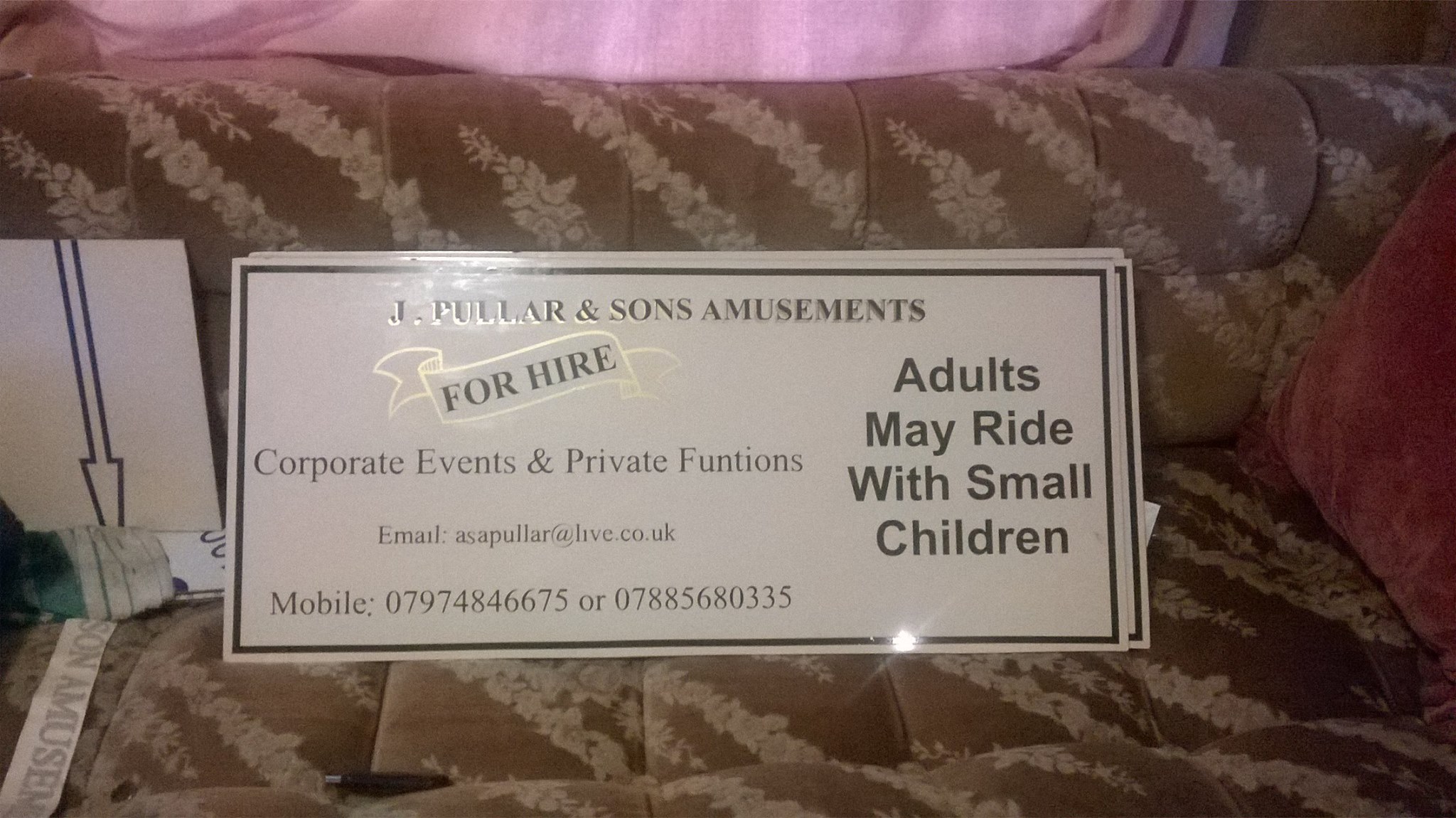 • Funfair and Machine Headboards, price signs and Saftey Signs Handrails
