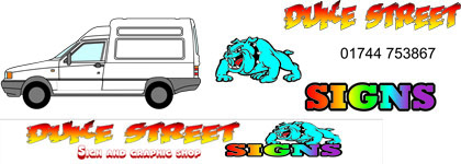 The Duke Street Text looks interesting, you could make that more interesting and maybe attach the word “signs” to make “DUKE STREET SIGNS”. Infact as pointed out, you have got a location name “Duke Street”, well maybe dump “Street” to “Duke’s Signs” so it isn’t location based. Our neighbour business moved few years back, they are called “Silver Street Motors” but they are no where near Silver Street now!The bulldog may work, but you got to work with it more or could the bulldog look agressive to customers? You may frighten them off.