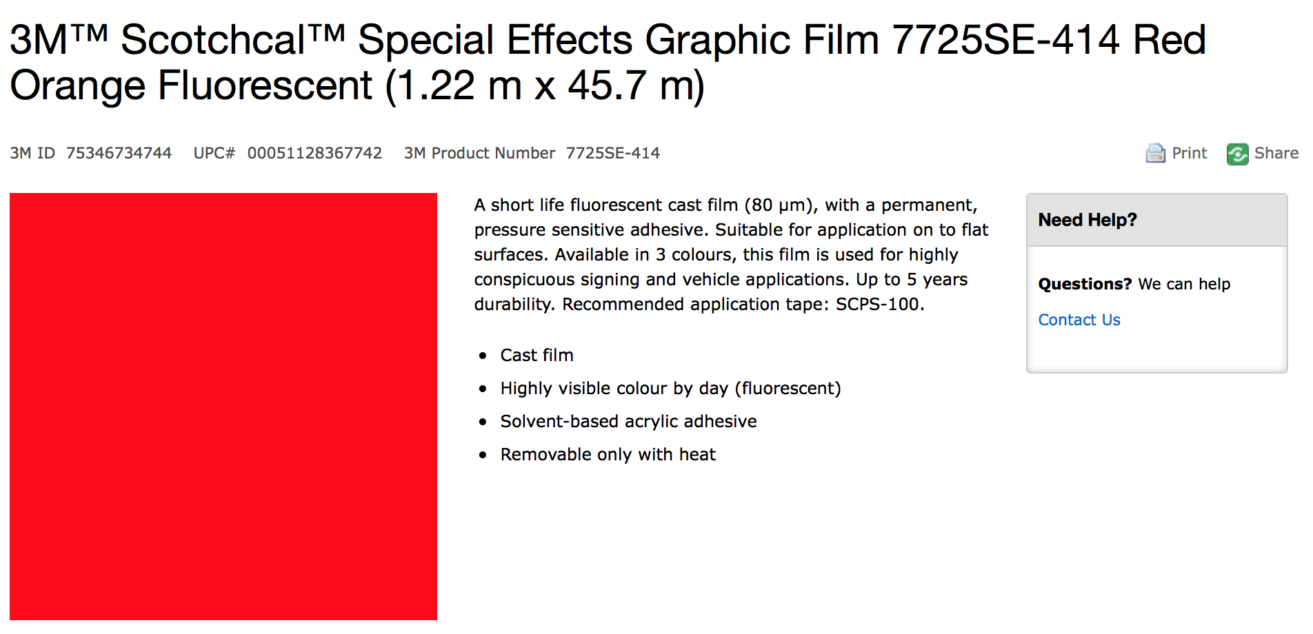 Cheers for that, Day Glow was the term used by James at 3M. Been in contact with them and he is shooting emails round the office to see if there is a history of materials used.