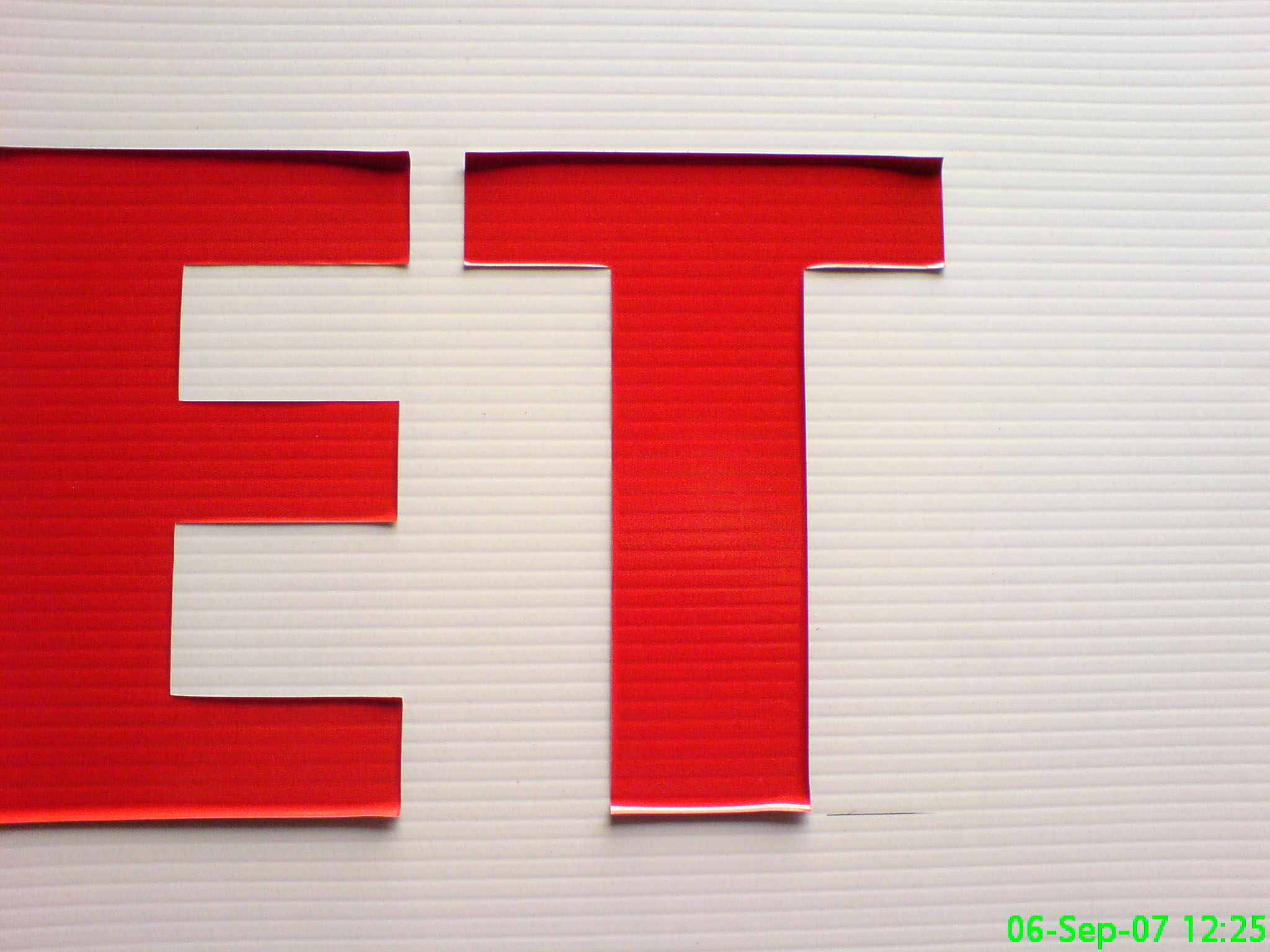A couple of weeks ago I made a pair of For Sale boards, on some fluted display board. I printed the logos, and being lazy at the time printed some red lettering as well. The material, a Mactac 3 year digital with removable adhesive all went down ok 3 days after printing onto isopropanel cleaned boards.