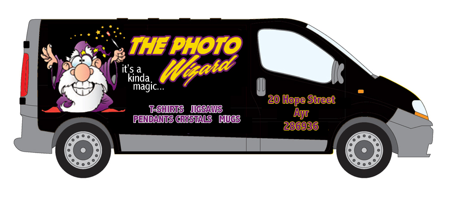 Posted by Neil Speirs on 18 February 2009 at 14:19Seeing as how things are really quiet at the moment I’m trying to come up with something really eye catching for my own van, so far the best I have managed is this :-?…. I’m going to change the angled text at the bottom to "Personalised Gifts, T-Shirt Printing, Photo Engraving & Photo Crystals" but not to sure how to lay it out for best result?