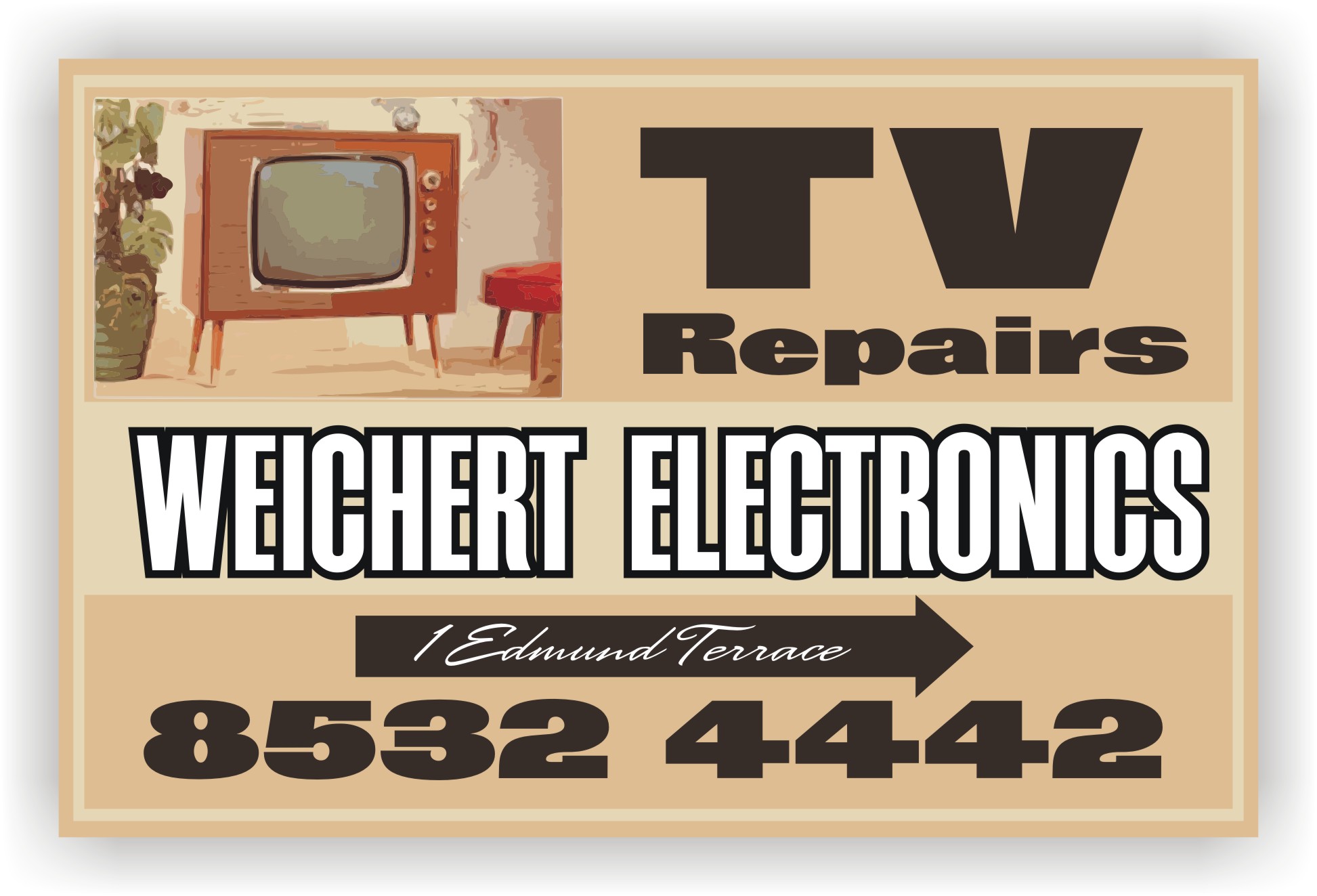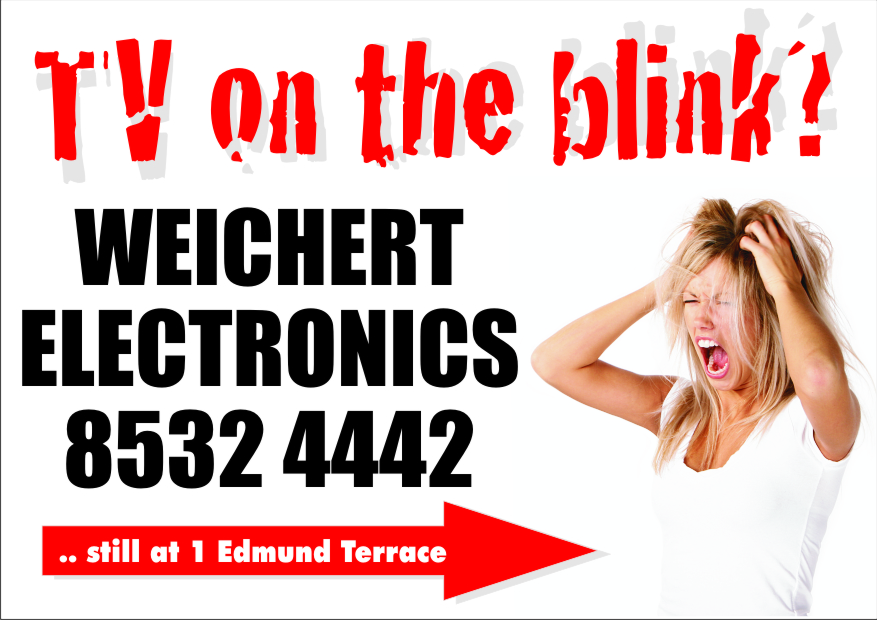 Well, I live in an overgrown country town where everyone knows everyone else, or so it seems, and as the business has been here for 25 years and is already fairly well known, I want the sign to remind people driving past that the business is still here … and if people who are new to the district see it, and the sign has caught their attention … I want them to ask their friends, or workmates or neighbours “who is this Weichert Electronics who is advertising up on …?”