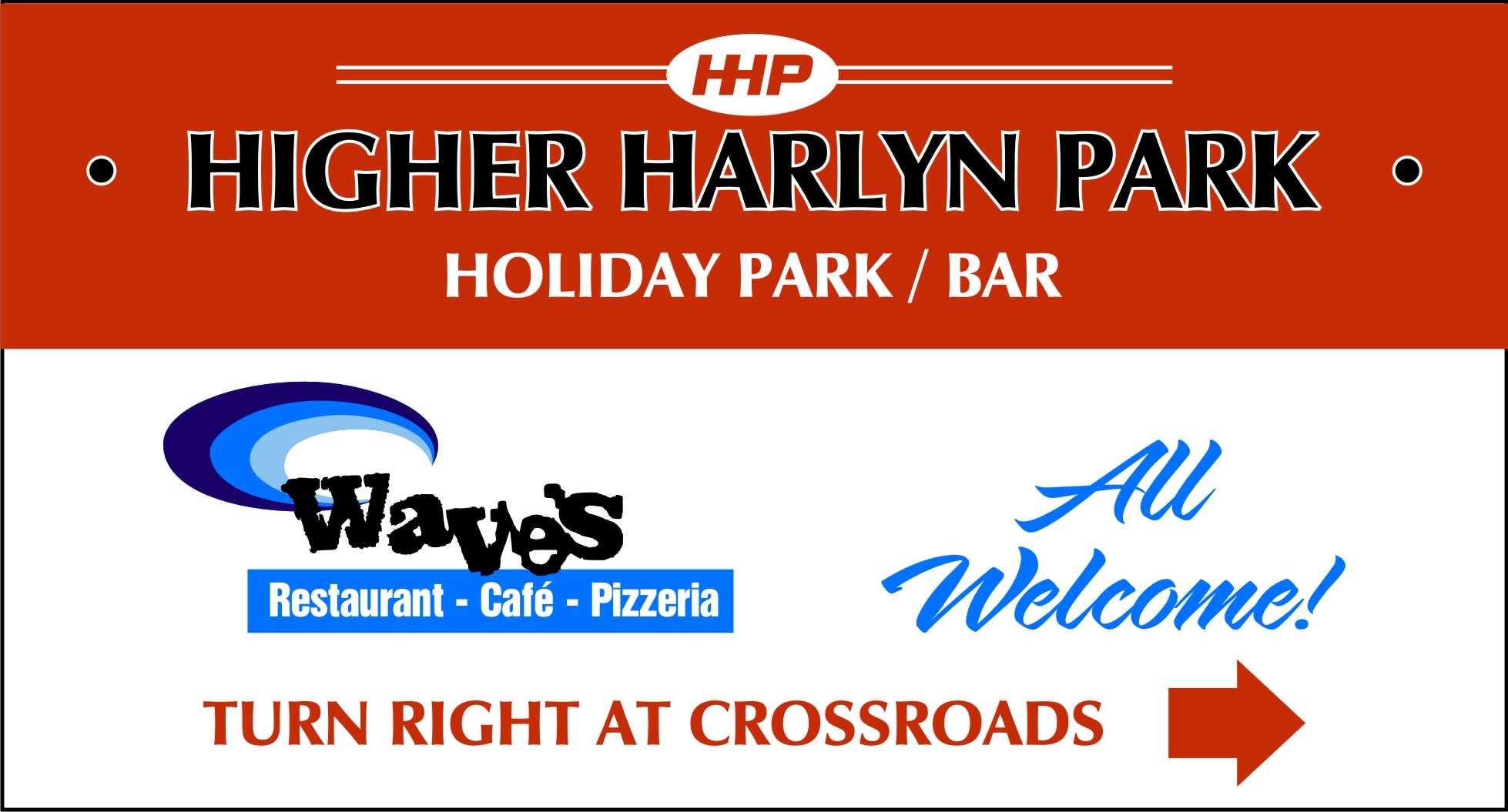 Can someone give me some crit/suggestions on improving this layout please. The sign is for directions to nearby campsite, which has the waves restaurant on site. The waves logo has to stay the same, and the hhp oval thing has too, but everything is free to change. No matter how much I fiddle with it I just can’t seem to get that clean classy look. Guess I’ve just been stareing at it too long.