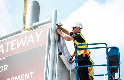 Hollywood Monster go to great lengths to get signs up for our clients Roxhill, Rugby Gateway.