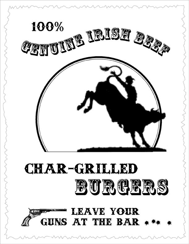 the other sign should say 100% genuine Irish beef char grilled burgers.Any hints/tips are very welcome