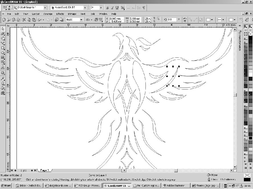Having a spot of bother with Corel. I need to fill in all the feathers of the phoenix with black in order to engrave from it but am having a spot of bother doing this. Each of the feathers is made up from a number of different lines so I tried to group each section of these lines and then fill with black but it won’t have it – any one got any suggestions.