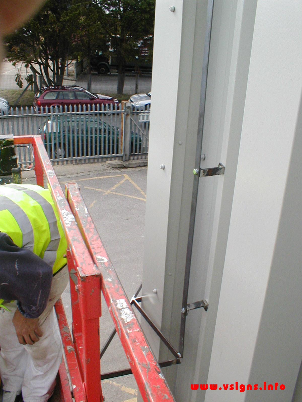 My concern is that there is no access to the rear of the cladding so only screw fixings are possible, do you think this is feasible? I am concerned about the wind load and have been warned by my brother in law who is a very experienced builder that even if the fixings hold, an adverse wind could pull the sign and cladding away as one.