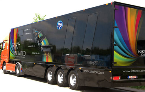 Featuring a 16.5m-long customised truck and trailer, the HP Latex Application Tour will once again visit the UK during October, stopping at six cities throughout England and Scotland. The 12-day road show will demonstrate the vibrant applications achievable on the HP Designjet L26500 and award-winning(1) HP Designjet L28500 Printers, as well as the HP Designjet Z6200 Photo Printer.