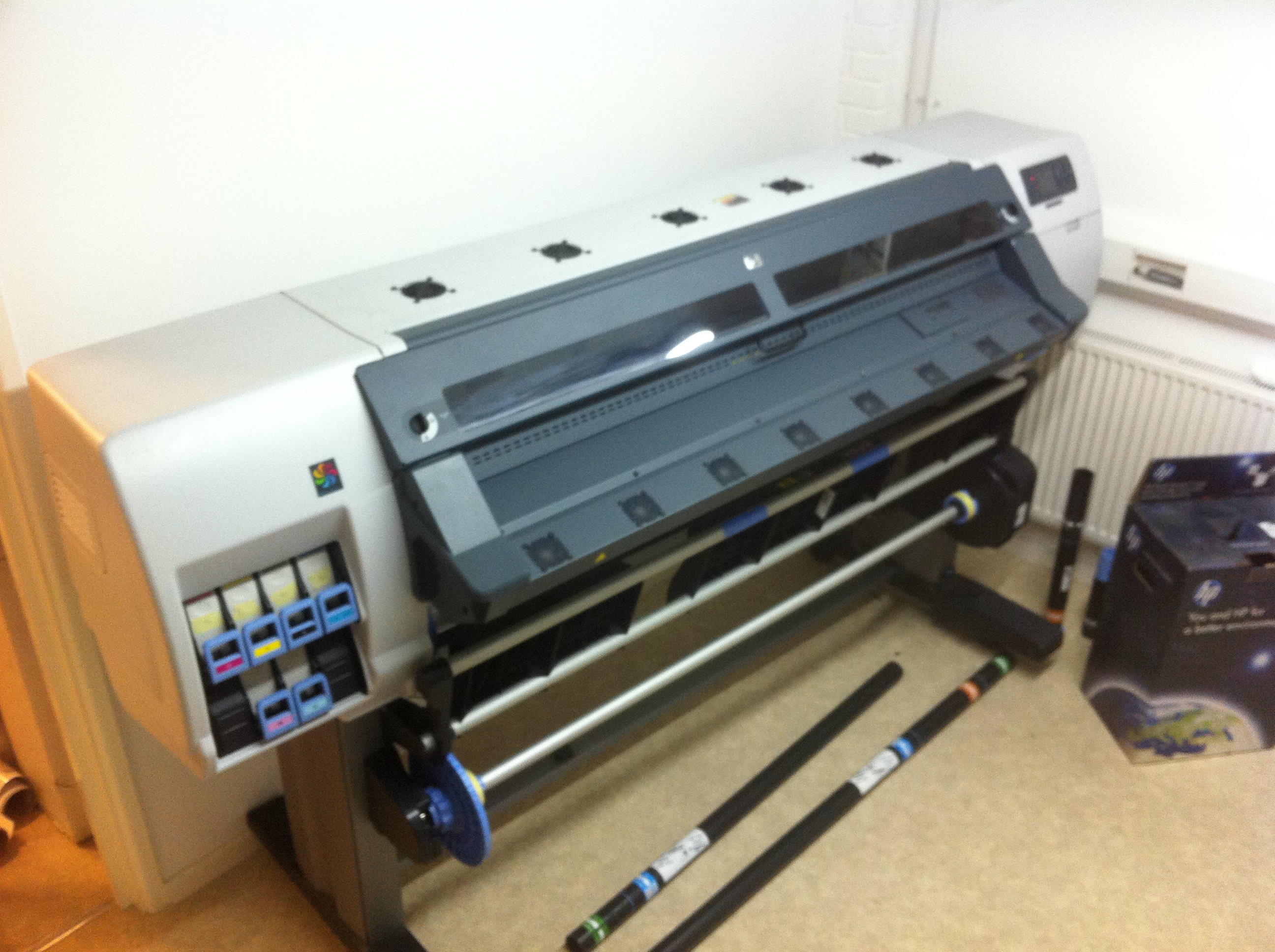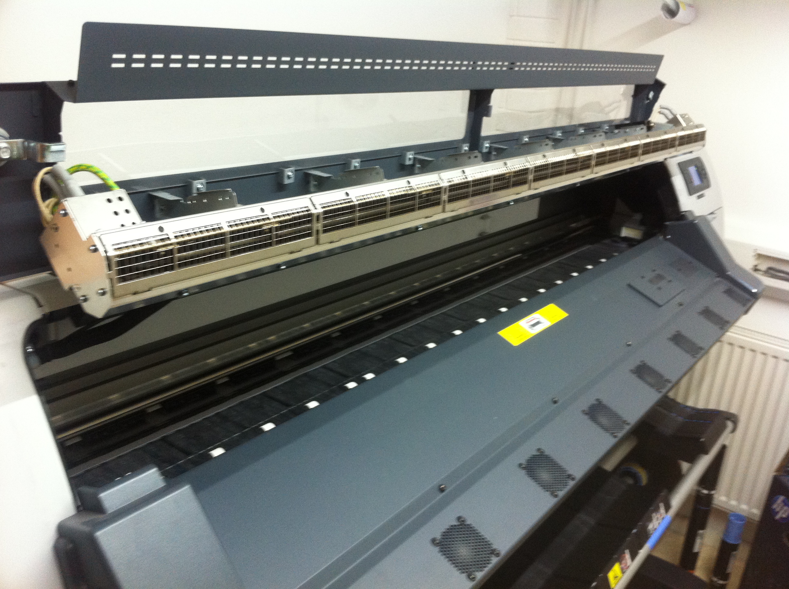 We had this printer installed in 2011 by William Smith, we purchased it with a 3 year extended Art System’s warranty package which is just expiring now, this can be renewed for around £2600 (msg me for info). We been using this machine on a daily basis, it prints around 2-3 jobs a day on mainly white vinyl, this machine will print banner but when have other machines that do this. Over the years we had very few breakdowns, the cover provided by Art Systems (HP Distributor) have a very good customer support package with a good next day nationwide engineer support, they have been fantastic in keeping the machine in good working order.One main benefit of the HP Latex is the print-heads and cleaning cartridge, with other printers you normally have to get an engineer out to service the machine when you have major quality issues but with the Latex you can replace major parts for very little money, this was one of the major factors when we purchased it as we won’t faced with a major bill suddenly. One thing we have noticed that over the last three years our printer has only filled up one waste bucket, some other printers will waste of lot of ink on cleaning cycles, this one doesn’t do bad at all and recently replaced the cleaning bucket (better for transporting to a new owner).