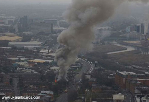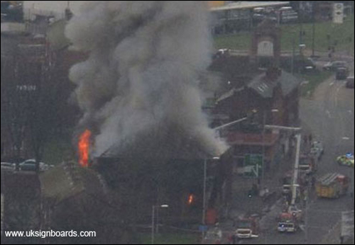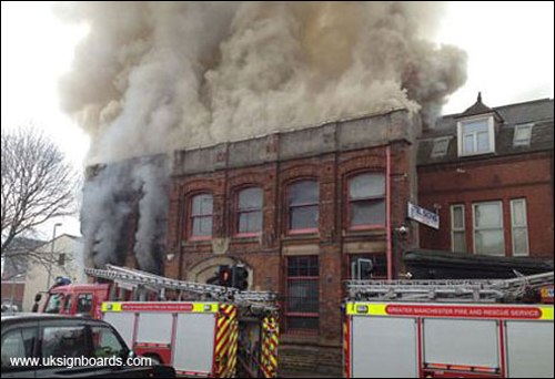 A HUGE fire has taken place at Tel Signs – the illuminated neon sign outlet – on Chester Road, Hulme this morning.