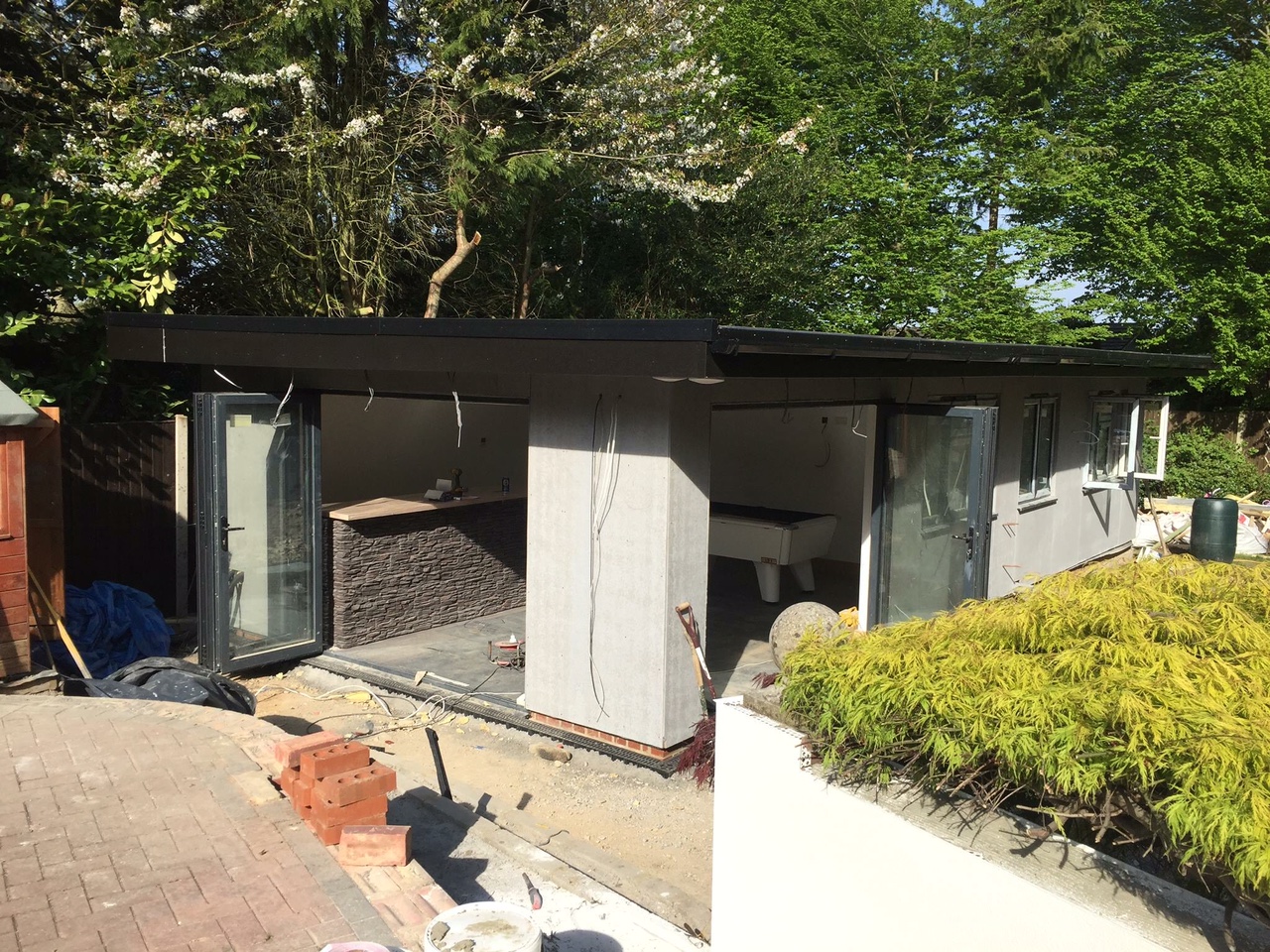 Ideas for an acrylic sign?Hi all, Following on from my other post in the Neon / LED section my customer has decided that the cost for a neon sign is too high for his home mancave (around £1000 for a 1m x 30cm outdoor neon sign). He wanted me to come up with something different for less money. In short he has just built a large mancave / outbuilding in his garden, it has a bar, gym, bathroom plus room for swimming pool pump etc. Above the large door he would like the name of his bar(!) to give it a more ‘party feel’ I have suggested to him perhaps acrylic lettering in a deep cerise pink colour (he has a daughter who loves pink) spaced outwards and mounted onto another piece of acrylic which in turn could screw onto the soffit. He has space on the face of his soffit to have the sign, around 300mm high to play with and approx a metre of so wide ideally. I’m not in the acrylic / sign type game (more vinyl / digital print) so does anyone have suggestions to what he can do or can point me in the right direction? Please see attached photo, the location of the sign is above the door on the left hand side on the black soffit. Thanks