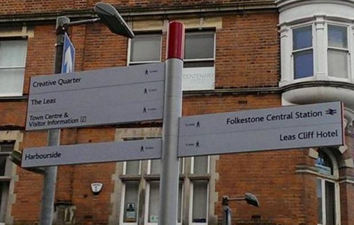 A sign installed to promote Folkestone landmarks to tourists has not been printed correctly. The signage, which has been erected by Kent County Council on Cheriton Place, directs visitors to the Leas Cliff Hotel rather than Folkestone’s famous Leas Cliff Hall.