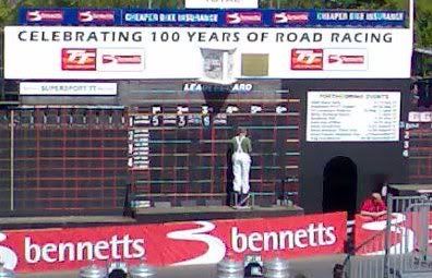 After just coming back from the Isle of Man, I’m glad to say that the traditional sign age methods were in evidence. No more so than at the main grandstand, no fancy electronic display here.
