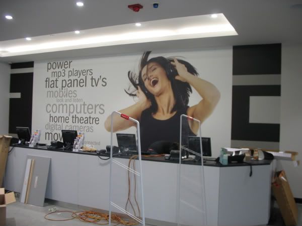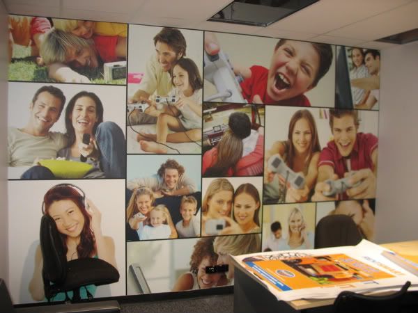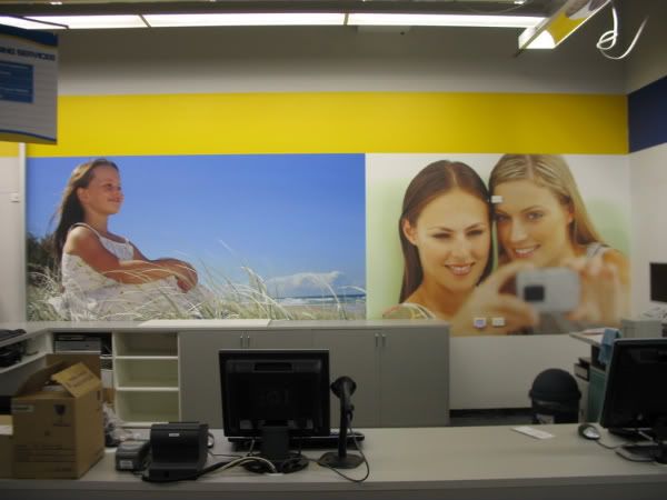 This wall is 8 Metres long and 3.4 M high. The EZ vinyl went up as smooth as silk with no bubbles and will be easy to replace as the displays change.
