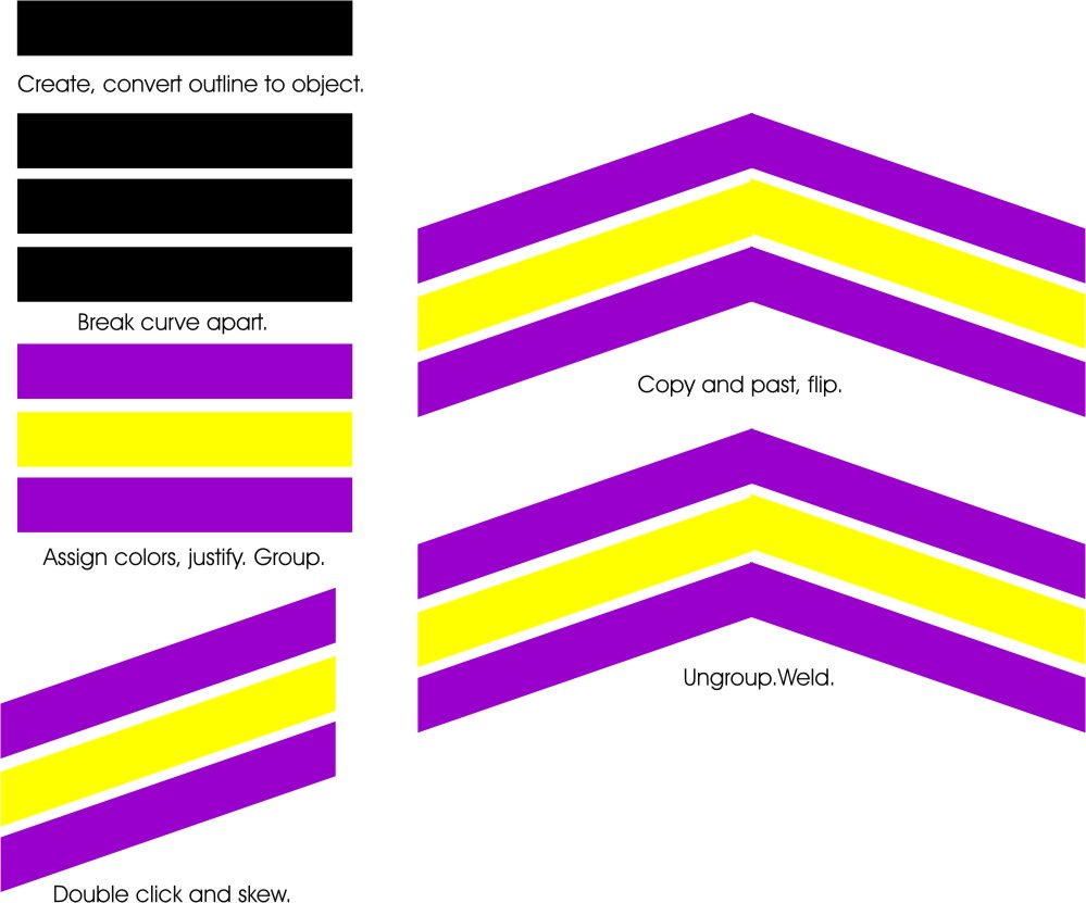 and in some places the bands will be slight curves – i have created a band with a 30mm purple rectangle with a 10mm one centred, is there an easy way to make the band curved, smoothly without altering the parallel lines, ie so the band can be manipulated like a line and all move together (trie envelope tool and it doesn’t quite work how i want)?