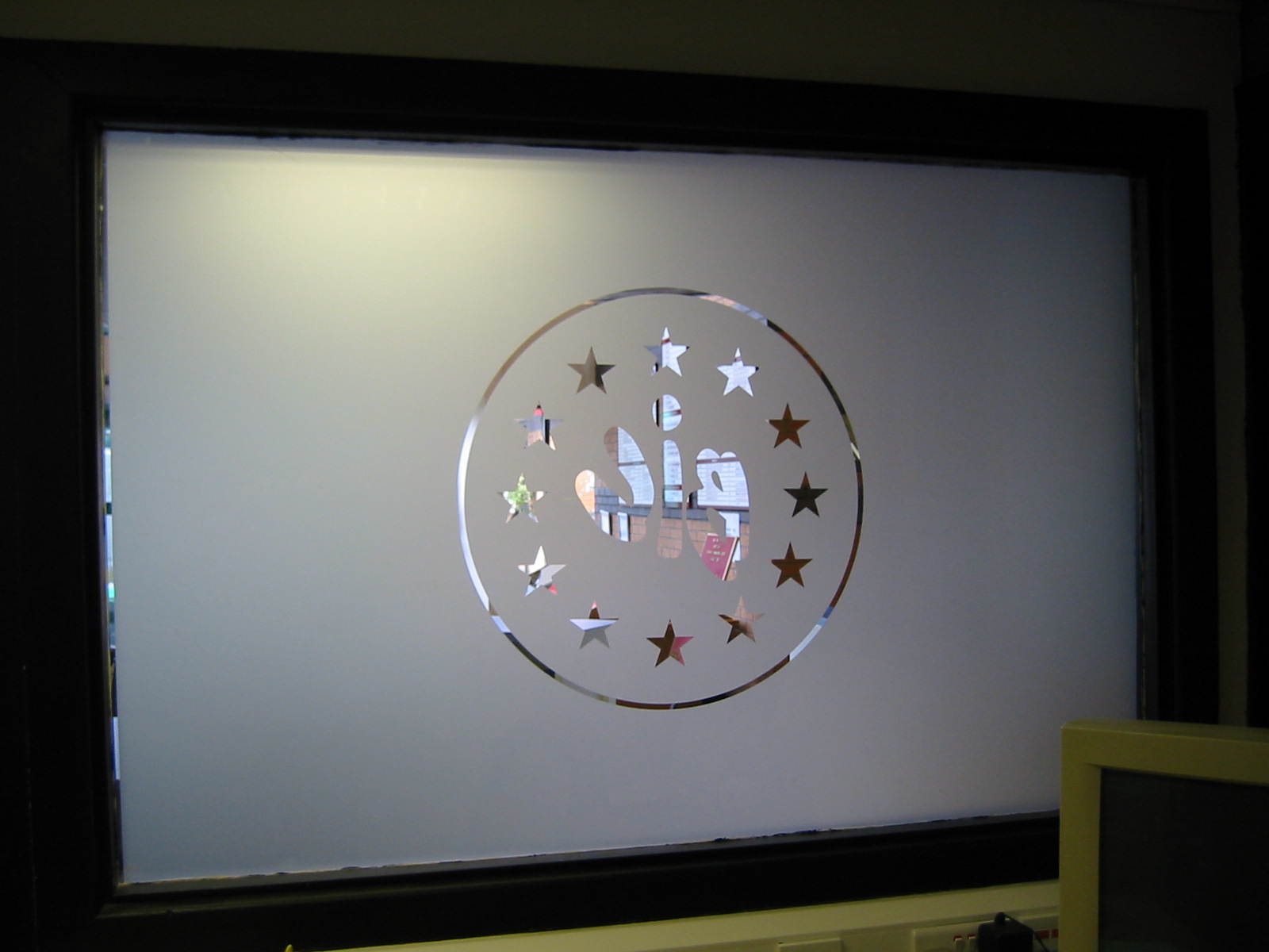 went into the office and it looked not too bad decided to take off and go back so what did i do wrong should i have reversed the cut image and applied to the other side of the window is the vinyl one sided i.e best viewed from one side thats what it looks like have posted some pics