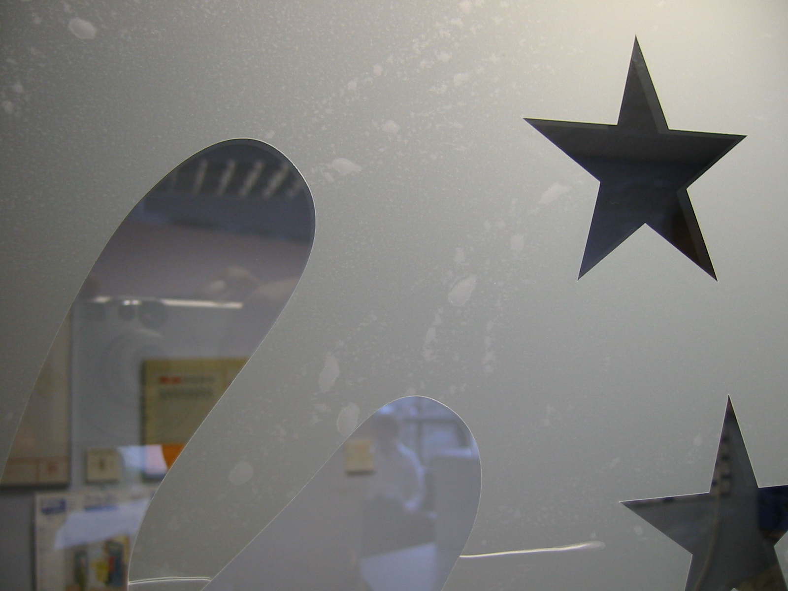 Another option, until you get the hang of dry application is to” pounce” cut the frosted vinyl