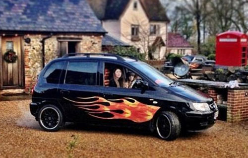 He car was covered in flame stickers, racing seats were fitted and a new exhaust. Jamie tweeted: ‘For jools xmas present I took her 3rd hand super Awful run around car (she loves it with a passion?) and i gave it the pimp your ride treatment !!!!’ ‘Yeah man, we’re talking silver to black paint, roaring flames to go with the 950 cc hair dryer engine, beefy exhaust back box to make it rubble down the high street and bad boy black covers that is class…and weirdly enough she just loves it!!!!!!really loves it!??????’ He added: ‘Very strange but all true love to you all #jamie xxxx.’