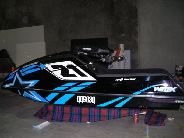 I have done a lot of jetskis, all stands up, over here in the uk. I am heavily involved in the scene, (used to be national pro freestyle champion) so i started off doing them for fun, then everyone wanted them doing and they sort of became a bit of a pain to be honest. So i stopped doing them, apart from my own and my mates. That design Jason, I not sure if you know, but you should be careful as it is what looks like a replica of an exotic signs kit. They do a LOT of jetskis, especially race teams etc etc and are very well known for their graphics. I was asked to do that exact same design on a kawasaki 800 but turned it down as I didnt want to get in trouble for copying their design etc. Not criticising, just wasnt sure if you knew.