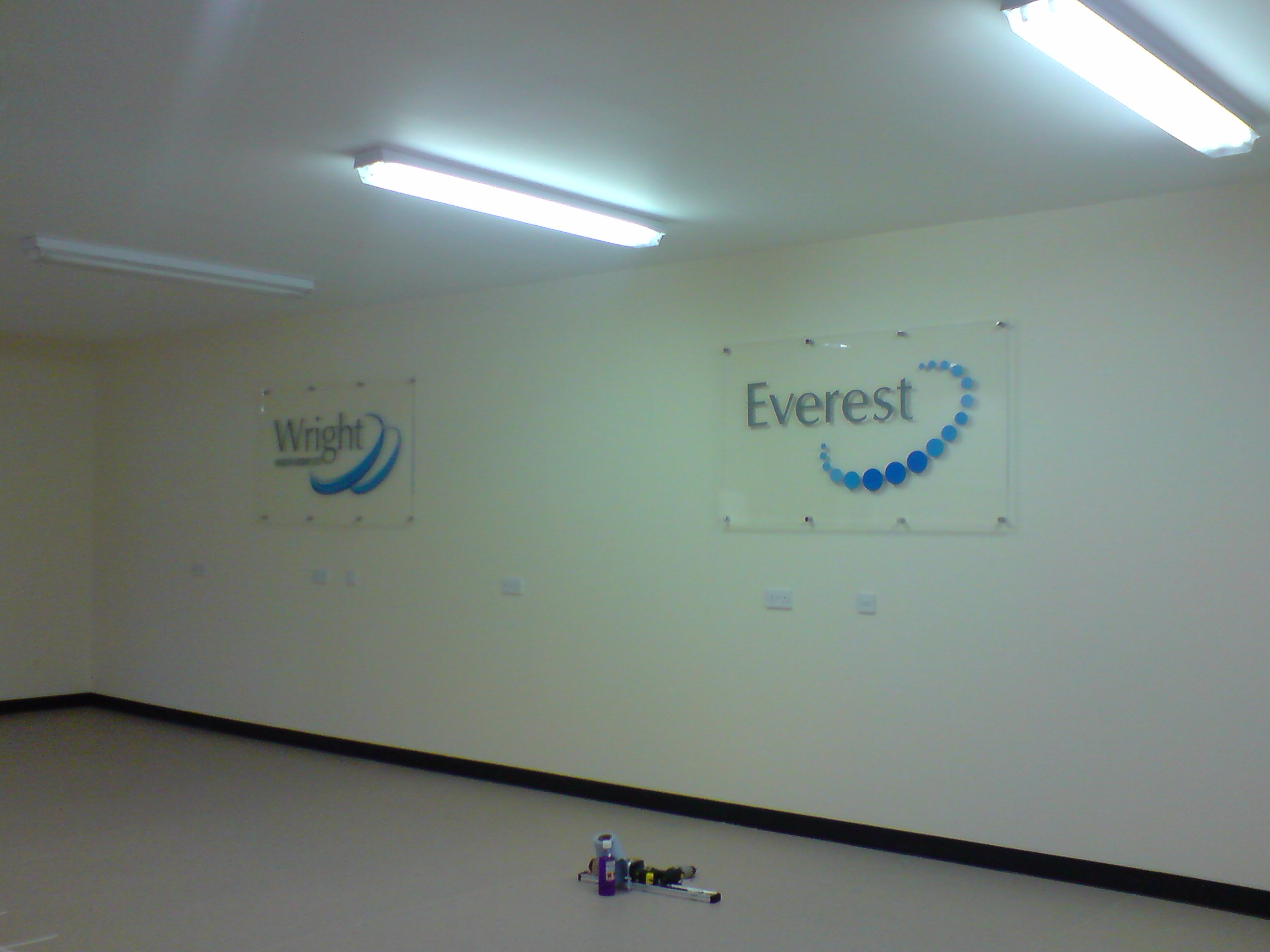 Wrights – 8mm flame polished acrylic with vinyl on rear. 1500x1000mm (heavy) & 600 x 350mm examples.