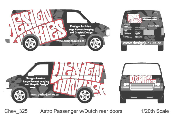 I to am slighly concerned that the ONLY place where you appear to have a complete logo/name is a small one on the rear. At first glance it’s completely lost, it takes an extended look to read the rest of the van to see it’s meant to be DESIGN JUNKIES and not DESIGN JUNIORS or something similar.