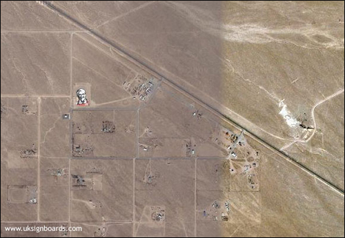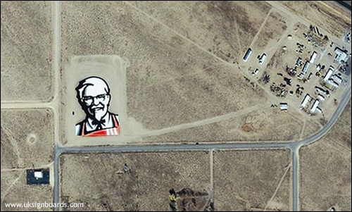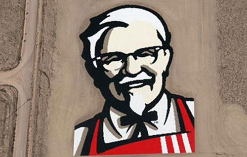 In 2006 KFC Corporation became the world’s first brand visible from outer space by unveiling a record-breaking 87,500 square feet, updated Colonel Sanders logo in the Area 51 desert. The event marks the official debut of a massive global re-image campaign that will contemporize 14,000-plus KFC restaurants in over 80 countries over the next few years.
