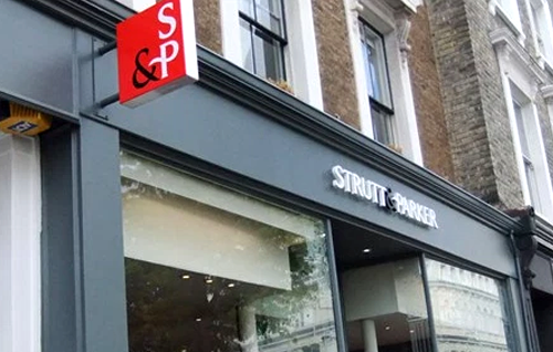 Strutt & Parker also requested an outfacing sign of their simplified logo. Outfacing signs are useful as they ensure brand recognition from all angles.