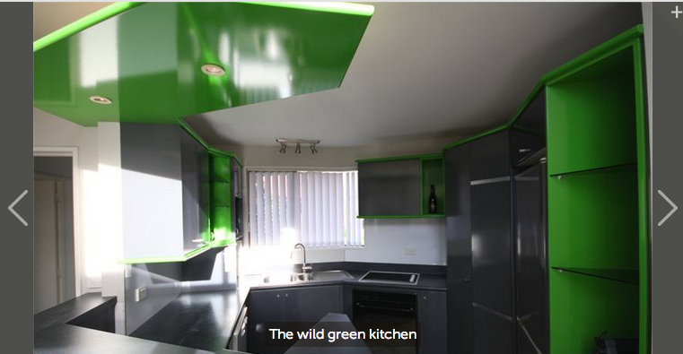 The kitchen was pink when I bought the house, but now its quite funky in 3M 180c apple green and dark grey.There are more photos here.