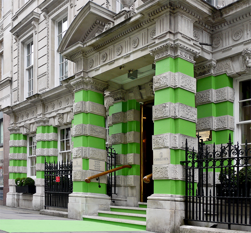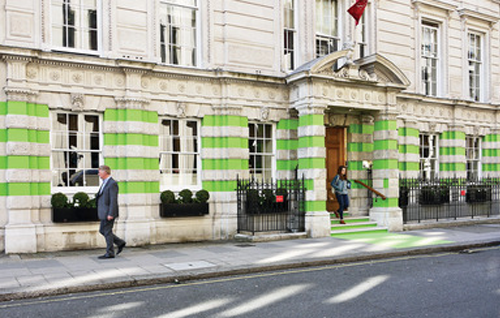 ‘Because the building is stone, and we had an extremely tight install time, a conventional brick vinyl was not an option for us as the material would have needed to have been heated in,’ explained Adam Broomfield, Sign and Display sales manager. ‘We ran some tests on the Asphalt Art material from CMYUK and, because it adhered very well to the stone fascia and the pavement, it was immediately approved by Christie’s.’