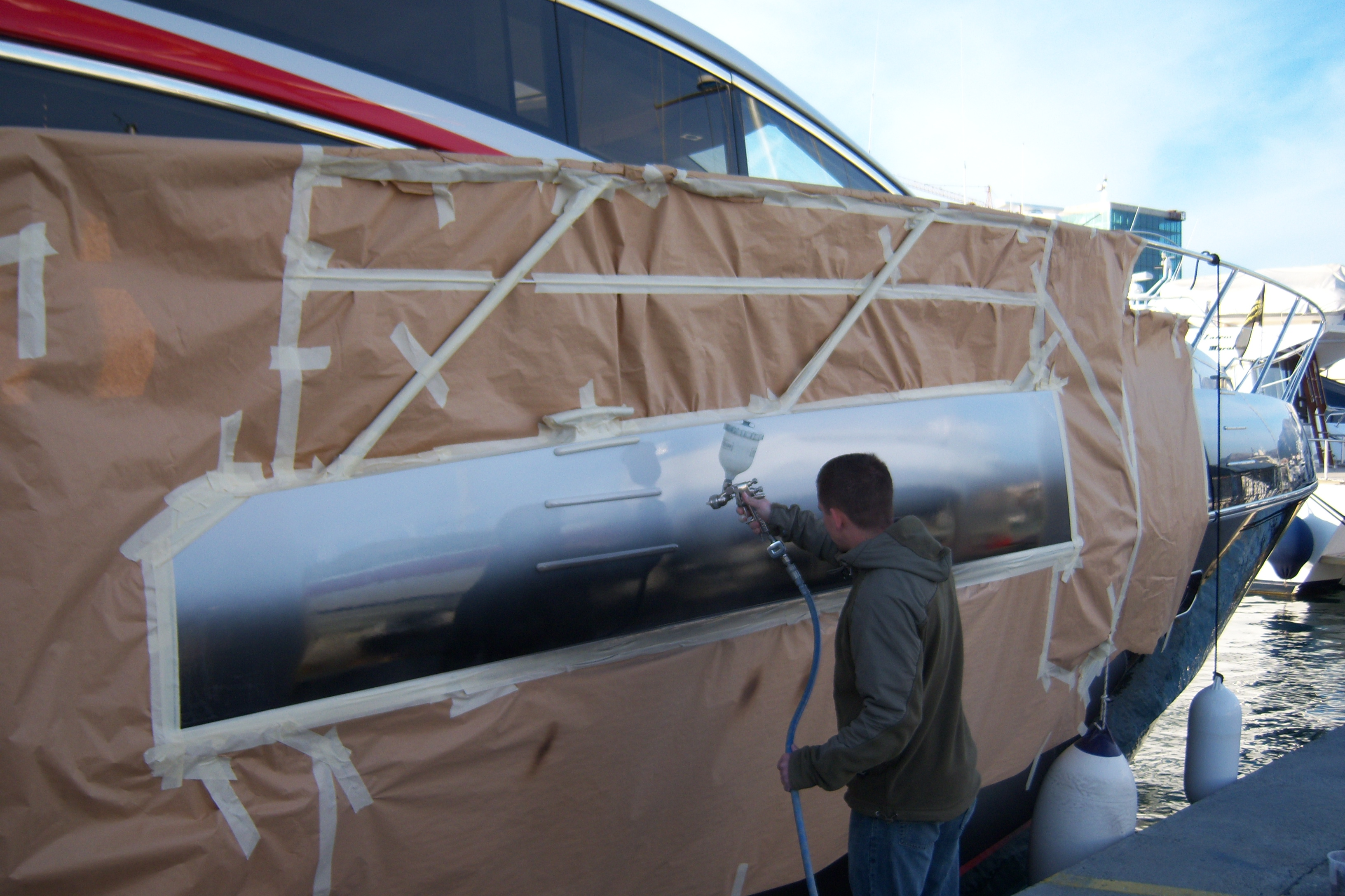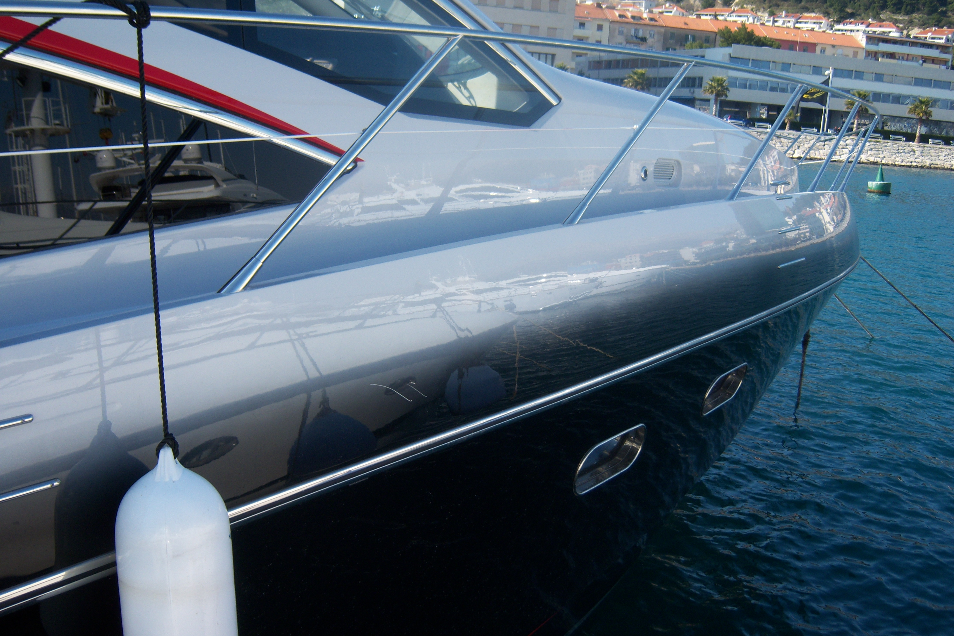 Following on from my post about working abroad, thought I would post the results! Fade from black to light silver grey was spray painted locally by Paul, and was damaged on the way to Croatia for the boat show, so he had to fly out to do the repair.