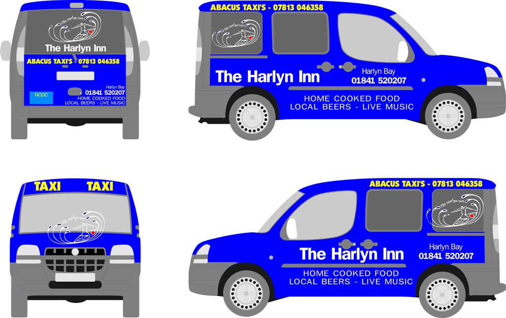 The yellow taxi part is already in place, it’s just the pub advertising I need to do. That is their supplied logo and franklin gothic font that they use already, but font could be changed to a better alternative if need be.