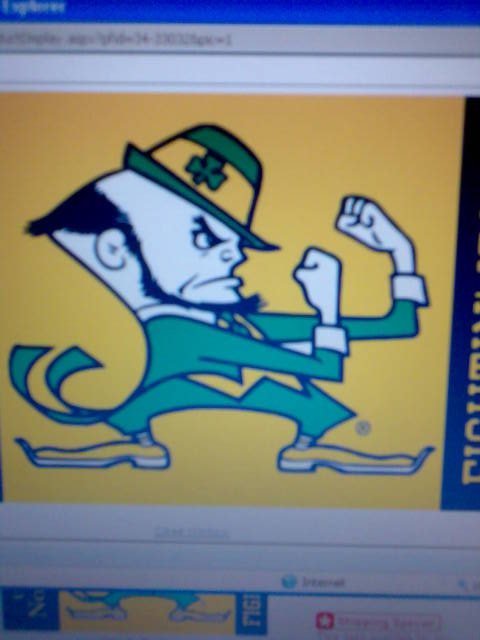 I might be wrong (not a sports fan) but that looks like the Notre Dame Fightin’ Irish guy.