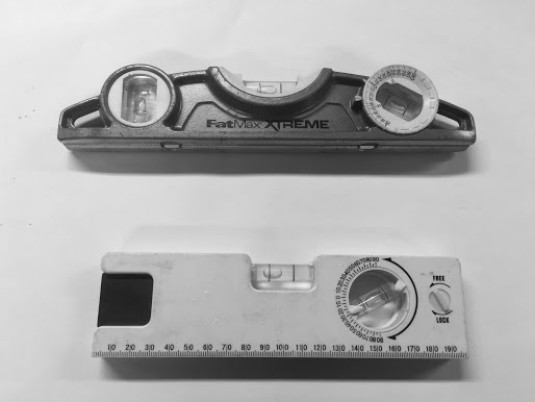 I have a laser level but more often than not I use a spirit level with an adjustable bezzel, just find the angle that you like and turn dial and lock, don’t forget that the other side is the opposite so reset.