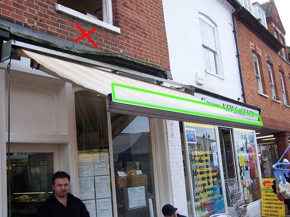 I have a job to do but the council has rejected putting anything on the brick surface above the shop as it is a grade 2 listed building. I am only left with the alternative to attach something to the awning frame above the shop window, this is the customers decision and I have explained that he takes full responsibility for it once fitted and he has signed an agreement.