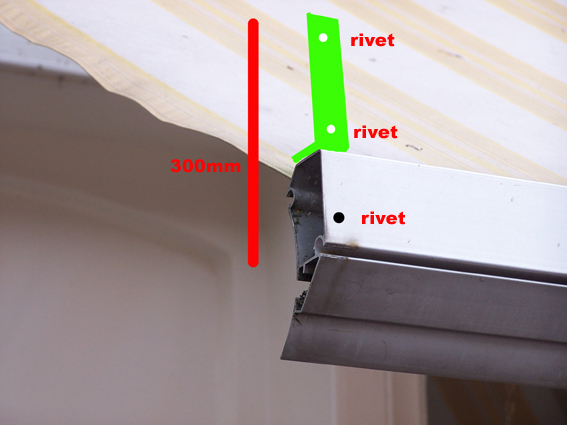 The awning is fairly strong and stable, it is a retractable awning that you wind with a steel rod to extend and retract, it has a groove in the face where a cover slips in to hang down to create extra shade (I think caravans have a similar thing around the edge to put up shade cloths) so the awning has some strength to it but I am still weary.
