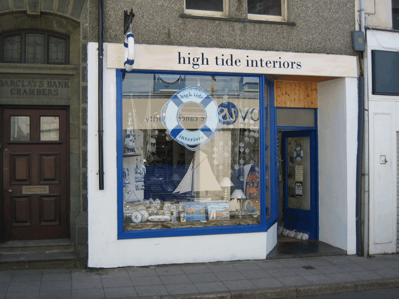 Reverse print in the window and door, backed with white and contour cut.